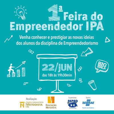 Prestigie a 1ª Feira do Empreendedor IPA, oportunidade para conhecer novos negócios dos alunos do IPA.