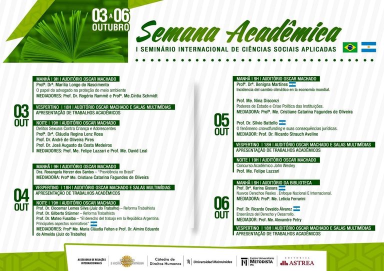 Semana Acadêmica dos cursos de Contábeis e Direito realizam I Seminário Internacional de Ciências Sociais Aplicadas juntamente com o curso de Administração.